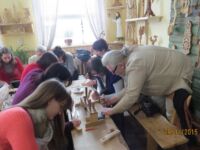 Po to projekto dalyviai vykosusitikti su Kavoliškio bendruomenės atstovais, kartu pietavo. Po skanių pietų verslininkas I. Skripkavedėvitražo ir juvelyriškos edukacines programas: iš stiklo gamino angelą bei pynimo ir kalimo būdu gamino žalvarinę apyrankę. Darbas nebuvo lengvas, tačiau nuoširdus bendravimas, įdomus pasakojimas, padrąsinantys vadovo žodžiai, nuoširdūs patarimai, pagalba, šilta arbata šildė jausmus ir rankas, skatino kuo geriau užbaigti pradėtą darbą ir surengti darbų parodėlę.