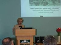 Konferencijos dalyvių dėmesio sulaukė Panevėžio kolegijos vedėjos V. Raubienės ir lektorės, režisierės Daivos Andrašūnienės pranešimas „Panevėžio kolegijos istorijos (priešistorijos) vizualizacija: vietos dvasios beieškant“.