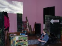 Vaidmenis spektaklyje sukūrė kolegijos teatro studentai: Gintarė Čerkesaitė (mergina), Žygimantas Grinkevičius (vaikinas) , Jonas Bagaslauskas (policininkas), Aurimas Šulskis (Mozešas), Joana Miltakytė(Šara), Ramūnas Junokas (vokietis).