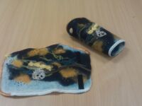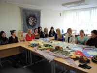 Vilė. Kūrybinės raiškos klubas man suteikė papildomų rankdarbių žinių. Susipažinau su vėlimo, skiautinių technologijomis. Kaip atskleidžia pavadinimas „rankdarbiai“, šios technologijos reikalauja daug rankų darbo. Tačiau sužinojau, kad veliant svarbu įgyti ir technologinių žinių. Atsimenu, kaip pirmąkart veldama su karštu vandeniu nudegiau rankų odą, tačiau dabar jau žinau, kokio karštumo vandens reikia. Viskas įgyjama per patirtį. Kūrybinės raiškos klube buvo galimybė išbandyti ir skiautinių techniką. Sužinojau, kaip siuvami skiautiniai, kaip derinti audinius, juos teisingai sujungti, sudygsniuoti rankomis ar siuvimo mašina. Žinoma, gerą atmosferą ketvirtadienio vakarais palaikė draugiškas kolektyvas: DTP-11 merginos ir dėstytoja Daiva Stropaitienė. Juk kūrybiškų žmonių kolektyve dirbti daug smagiau, jaukiau.