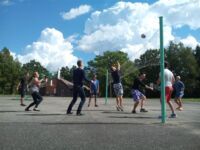 Po pietų stovykloje „fuksus“ aplankė svečiai iš kolegijos: direktoriaus pavaduotojas studijoms R. Kliminskas, studentų užimtumo centro koordinatorė G. Lukoševičienė bei kolegijos direktorius E. Žukauskas. Į stovyklą jie atvyko su dovanomis ir gražiais linkėjimais, po kurių – draugiškas tinklinio mačas.