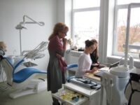 Antradienį, balandžio mėn. 26 d. Panevėžio kolegijos Odontologinės priežiūros studijų programos studentai sėkmingai išlaikė kvalifikacinį egzaminą. Studentams teko atlikti įvairias su jų darbu susijusias užduotis – asistuoti gydytojui odontologui pildant medicininius dokumentus, ruošiant priemones odontologinei operacijai, atliekant rentgenologinį tyrimą, tvarkant ir prižiūrint darbo vietą bei instrumentus. Būsimieji burnos priežiūros specialistai aiškino kaip tinkamai prižiūrėti dantis ir pasirinkti burnos priežiūros priemones pacientams, nešiojantiems ortodontinius aparatus.