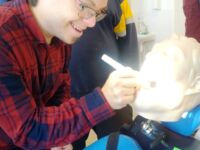 O spalio 19 d. Jaunuolių dienos centro lankytojai atvyko į Panevėžio kolegijos Praktinio mokymo centro burnos priežiūros laboratoriją, kurioje burnos higienos ir socialinio darbo specialybių studentų padrąsinti buvo supažindinti su odontologijos kabineto įranga, galėjo išbandyti kaip ji veikia. Jaunuoliams buvo pakartotos dantų valymo žinios, jie patys bandė pritaikyti dantų priežiūros priemones, matavosi asmenines apsaugos priemones, naudojamas odontologijos kabinete.