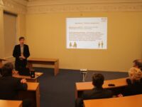 Dr. D. Bakšys pranešimo metu renginio dalyviams pristatė esmines verslininko savybes, verslumo ugdymo kolegijoje prielaidas, papasakojo apie verslo idėjų finansavimo galimybes, supažindino su kolegijoje pradėtu diegti trijų etapų studentų verslumo ugdymo modeliu. Šiuo metu kolegijoje pradėtas vykdyti pirmasis studentų verslumo ugdymo modelio etapas – į visas studijų programas integruotas Verslumo pagrindų dalykas. Antrajame etape numatyta į studijų procesą įtraukti pasirenkamąją verslumo praktiką kolegijoje veikiančiose imitacinėse bendrovėse, kurios metu imitacinėje aplinkoje studentams bus sudarytos sąlygos susipažinti su praktiniais verslumo procesais. Verslumo ugdymo modelio trečiasis etapas – Verslumo centro, kuriame būtų steigiami nauji kolegijos bendruomenės verslai (startuoliai), įkūrimas.