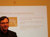 Panevėžio kolegijos Informacinių technologijų centro vadovas Audrius Valinskas skaitė įkvėpiantį pranešimą apie savo kaip laisvai samdomo darbuotojo patirtį. Pranešimo, kurio tema “Ar galėčiau būti freelanceriu?”, metu A. Valinskas apibūdino “freelancerio” sąvoką, papasakojo apie savo, kaip laisvai samdomo darbuotojo – programuotojo darbo pobūdį, pristatė sukurtus darbus, davė daug naudingų patarimų ketinantiems pradėti verslą, pasidalino sėkmingais “freelancinimo” pavyzdžiais: vinted.lt, Oberlo, Skype, Facebook, Angry Birds ir kt.