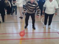 Na, o ketvirtoji Ligitos užduotis pareikalavo komandų vikrumo. Nes čia jie vietoj futbolo kamuolio turėjo spardyti balioną. Kuris nepaklusdavo dalyviams ir ne visada „riedėdavo“ ten kur reikia. Bet senjorų ir ansamblio „Avilys“ komandos įrodė, kad viskas yra įmanoma, reikia tik kantrybės ir ryžto.