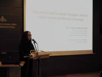 Pirmoji pranešimą pristatė Dr. Julija Eidukevičiūtė, Vytauto Didžiojo universiteto Socialinių mokslų fakulteto Socialinio darbo katedros dėstytoja. Ji skaitė pranešimą „Socialinio darbo kaip žmogaus teises užtikrinanti profesija Lietuvoje“. Pranešimo metu dr. J. Eidukevičiūtė atkreipė dėmesį, kad keičiantis socialinio darbo sampratai, turėtų keistis ir požiūris į socialinio darbuotojo kompetenciją bei studijas.