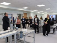 Po pietų pertraukos renginys persikėlė į Panevėžio kolegiją, kur praktinio mokymo centro vadovas Kęstutis Lukoševičius bei direktoriaus pavaduotojas mokslui ir plėtrai dr. Evaldas Sapeliauskas supažindino su Praktinio mokymo centru ir laboratorijomis.