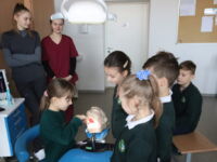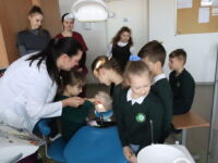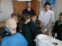Burnos higienos studijų programos studentai ir dėstytojai kovo 1 d. Panevėžio „Ąžuolo“ progimnazijos pirmokams vedė užsiėmimą „Sveikų dantų komanda skuba į pagalbą“.