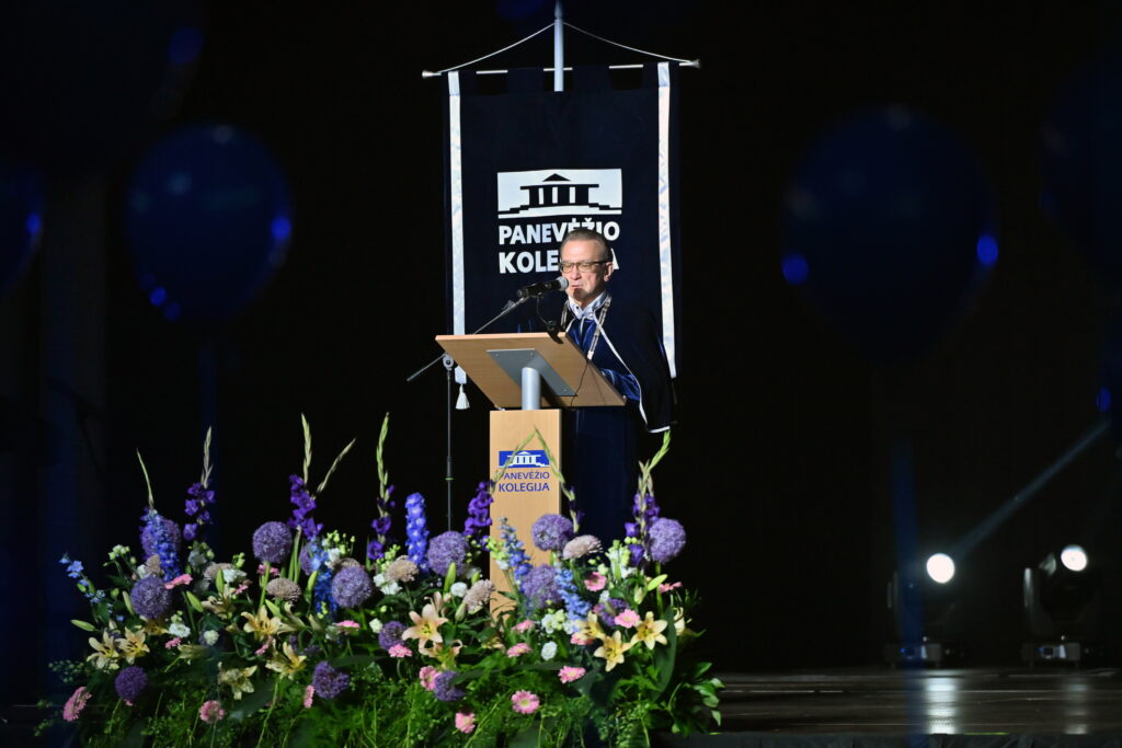 „Šiandien ypatinga diena – diplomų įteikimo šventė, kai pagerbiame jus, absolventus, už jūsų pastangas ir pasiekimus. Dėkojame dėstytojams ir socialiniams partneriams už bendrą darbą, kurio dėka į gyvenimą išleidžiame 279 diplomuotus specialistus, tarp jų – ir būrį sėkmingai studijas baigusių užsieniečių.