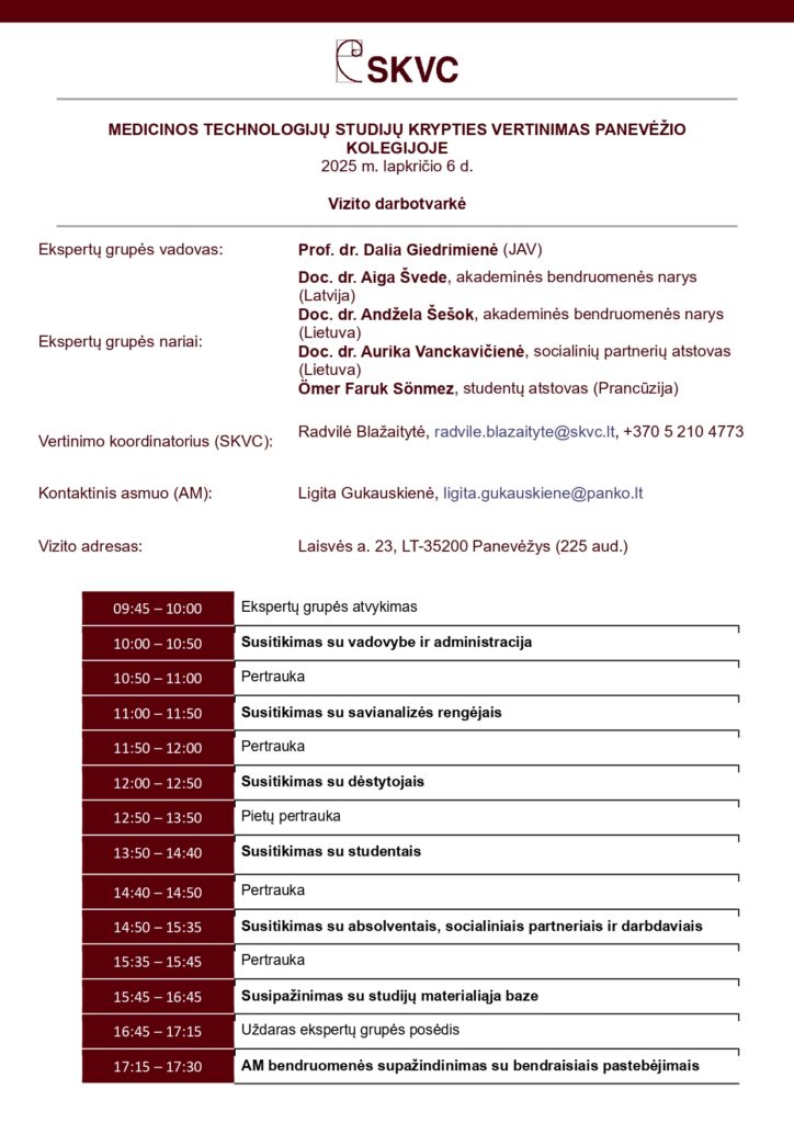 MEDICINOS TECHNOLOGIJŲ STUDIJŲ KRYPTIES VERTINIMAS PANEVĖŽIO KOLEGIJOJE