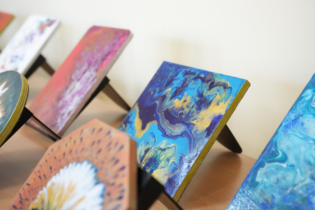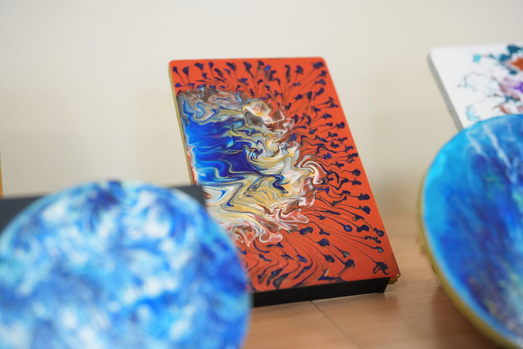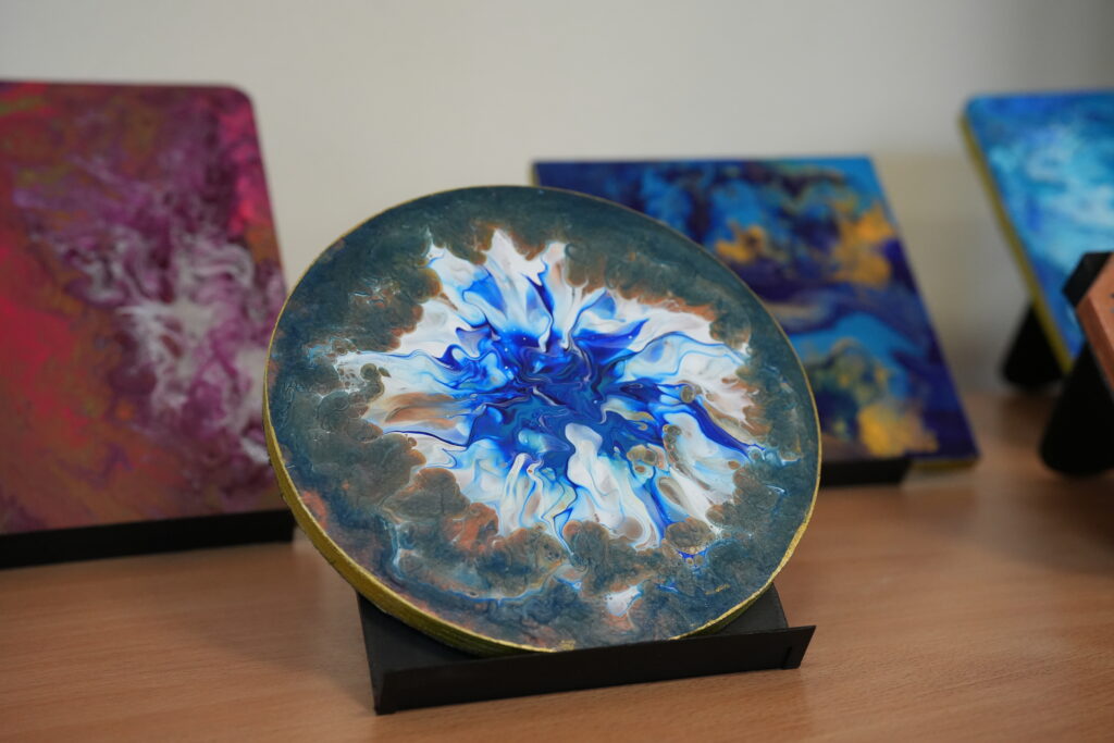 Panevėžio kolegijos bibliotekoje pristatoma Ikimokyklinio ir priešmokyklinio ugdymo studentės Karolinos Petronytės akrilo liejimo paroda „Spalvų šokis“.