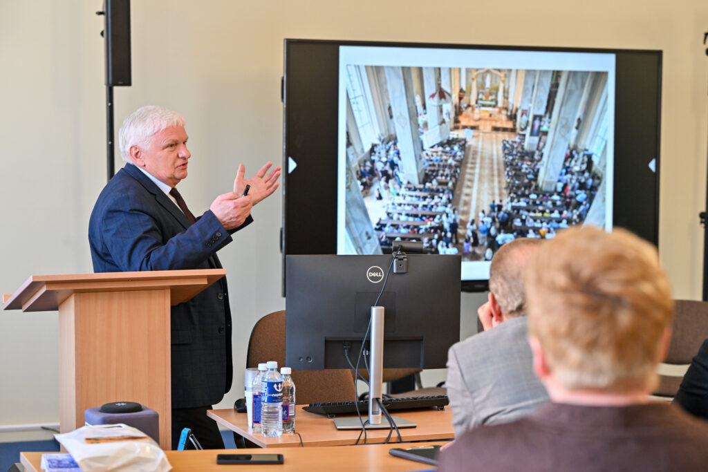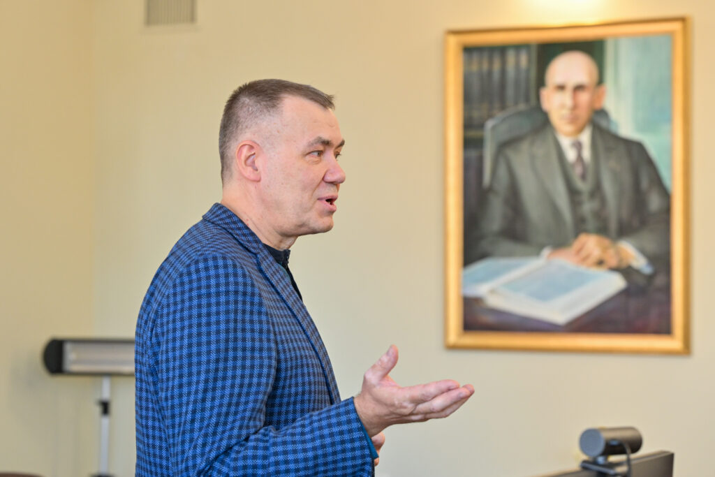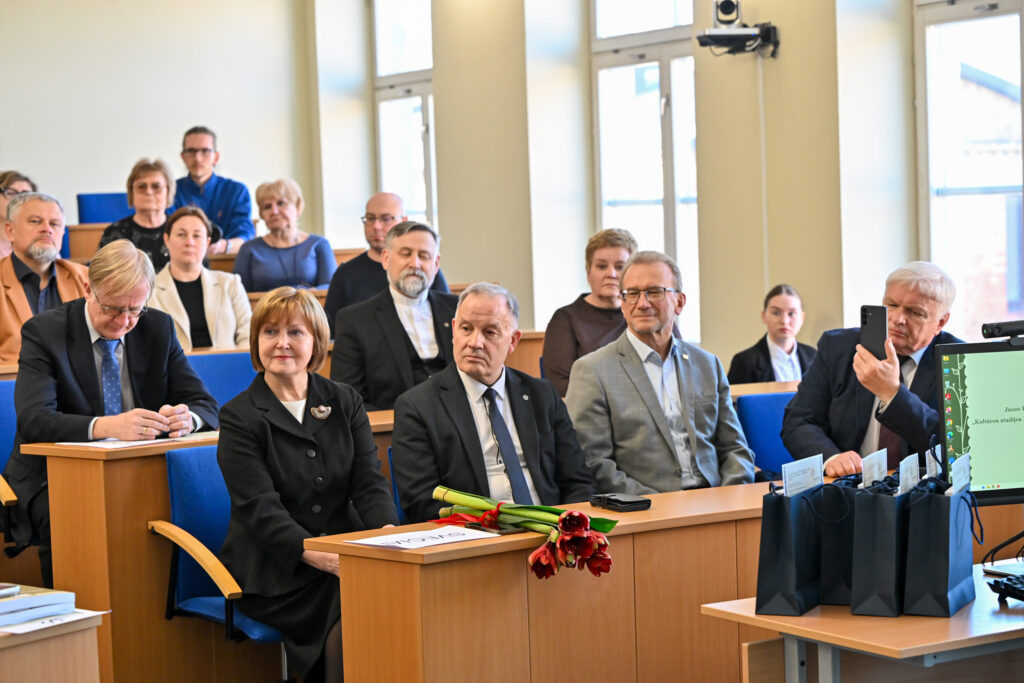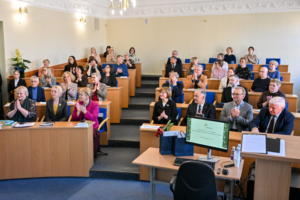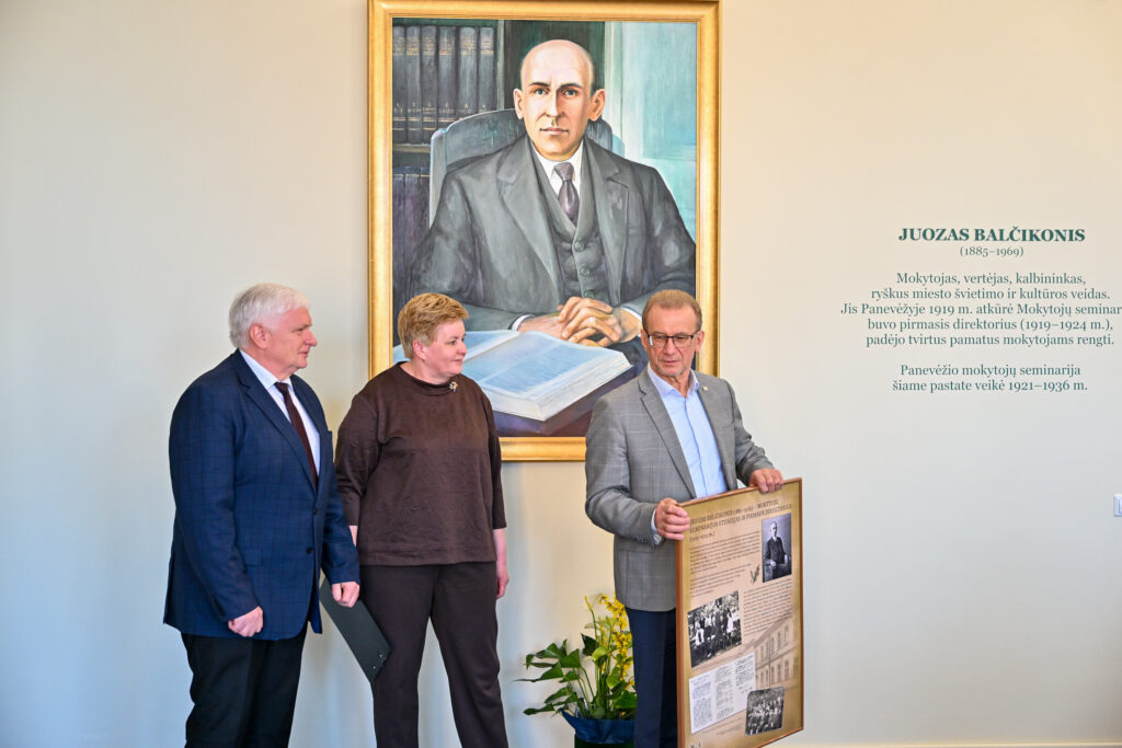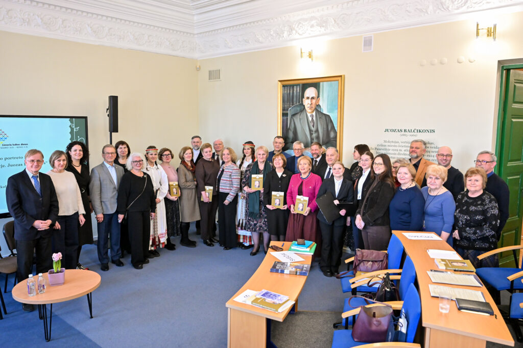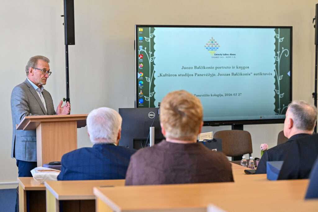 Paskutinį kovo penktadienį Panevėžio kolegija ir Lietuvių kalbos draugija sukvietė lietuviško žodžio ir kultūros puoselėtojus į kalbininko, vertėjo, pedagogo Juozo Balčikonio portreto Panevėžio kolegijoje ir knygos ,,Kultūros studijos Panevėžyje. Juozas Balčikonis“ sutiktuves, skirtas Lietuvių kalbos dienoms. Įžangos žodį taręs kolegijos direktorius dr. Gediminas Sargūnas pasidžiaugė, kad aukštosios mokyklos istorijoje įrašomas naujas puslapis: J. Balčikonio auditorijoje pristatomas kolegijos dėstytojo, dailininko Sigito Laurinavičiaus kalbininkui sukurtas portretas bei ką tik dienos šviesą išvydusi panevėžietės redaktorės, leidėjos, Komunikacijos centro ,,Kalba. Knyga. Kūryba“ vadovės Lionės Lapinskienės sudaryta knyga. Jis pažymėjo, jog kolegijoje įkurta didžio kalbininko auditorija, tai tarsi simbolinė vieta, kurioje susitinka Mokytojų seminarijos istorija ir kolegijos nūdiena. Priminė, kad 2012 m. švenčiant mokslo įstaigos veiklos dešimtmetį buvo įvykdytas svarus projektas, atvėręs iki tol dulkėmis nusėdusius kultūros klodus. Tuomet atidaryta auditorija, skirta kalbininkui Jonui Jablonskiui, dirbusiam Panevėžio mokytojų seminarijoje atminti bei pristatyta misterija ,,Nubudom kalbos geležy.“ O 2016 m. išleista istoriškai vertinga knyga ,,Kelias nuo Mokytojų seminarijos iki Panevėžio kolegijos.“ 2025 metais, minint J. Balčikonio 140-ąsias gimimo metines, buvo įkurta jo vardo auditorija. Baigdamas įžangos žodį kolegijos direktorius linkėjo , kad ši erdvė taptų jaukia ir dvasinga vieta, jungiančia praeitį ir dabartį.