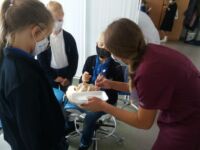 Rugsėjo 14 d. Panevėžio kolegijos Praktinio mokymo centro Burnos priežiūros laboratorijoje vyko mokslo festivalio „Erdvėlaivis Žemė 2021“ užsiėmimas „Penki žingsniai iki sveikų dantų“. Renginyje dalyvavo Panevėžio „Vilties“ progimnazijos antros klasės mokiniai, vadovaujami mokytojos Astos Sakalienės. Užsiėmimą vedė Panevėžio kolegijos lektorė Rima Adomaitienė, o jai padėjo antro kurso burnos higienos studijų programos studentės Airida Mikalauskaitė, Silvija Martyšiūtė, Marija Stanaitytė, Lina Sofija Dluskutė ir Vaiva Virbalaitė.