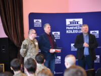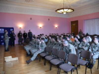 Pertraukos metu ir po turnyro gimnazistai aktyviai domėjosi kolegijos Aktų salėje vykusia ginklų paroda, bendravo su KASP savanoriais.