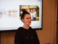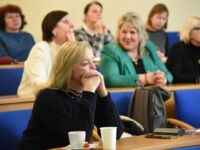 Kolegijos dėstytoja, Panevėžio verslių moterų tinklo vadovė Santa Vaškevičienė vedė paskaitą apie verslo lūkesčius specialistams ir ateities kompetencijas darbo rinkoje.