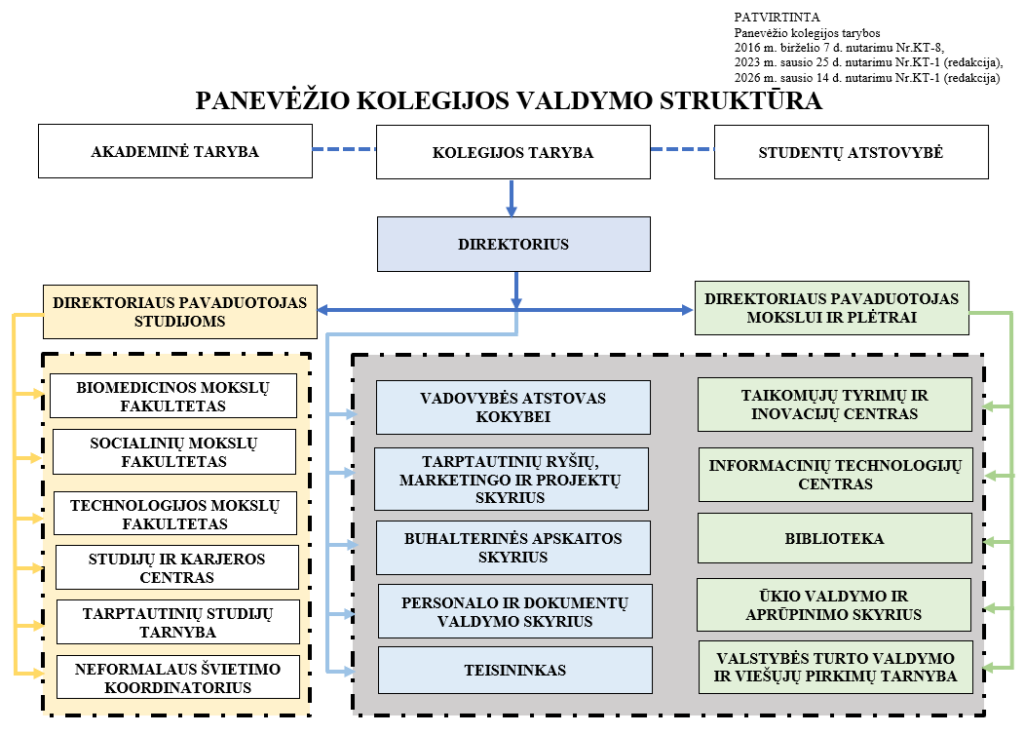 Panevėžio kolegijos tarybos 2026 m. sausio 14 d. nutarimu Nr. KT-1 patvirtinta Panevėžio kolegijos struktūra.