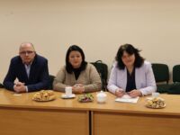 Panevėžio kolegija/State Higher Education Institution was visited by the Director of the P. Stradiņš Medical College of the University of Latvia, dr. Iveta Strode, Inguta Grinberga, head of the aesthetic cosmetology and medical massage study program and public procurement employee Aivars Grinbergs. Panevėžio kolegija/State Higher Education Institution staff members presented the ongoing study programs, social partners, and internship opportunities for students. The guests saw the practical training spaces, the tools and equipment.