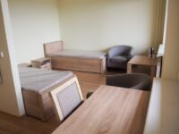 - Keturi dviviečiai kambariai su dušais ir tualetais. Viso 8 lovos. Yra arbatinis.